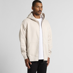 Zip hood, CVC fleece, 2-way YKK zip, inset sleeves, self-fabric hood lining, 2x2 cuff and hem ribbing